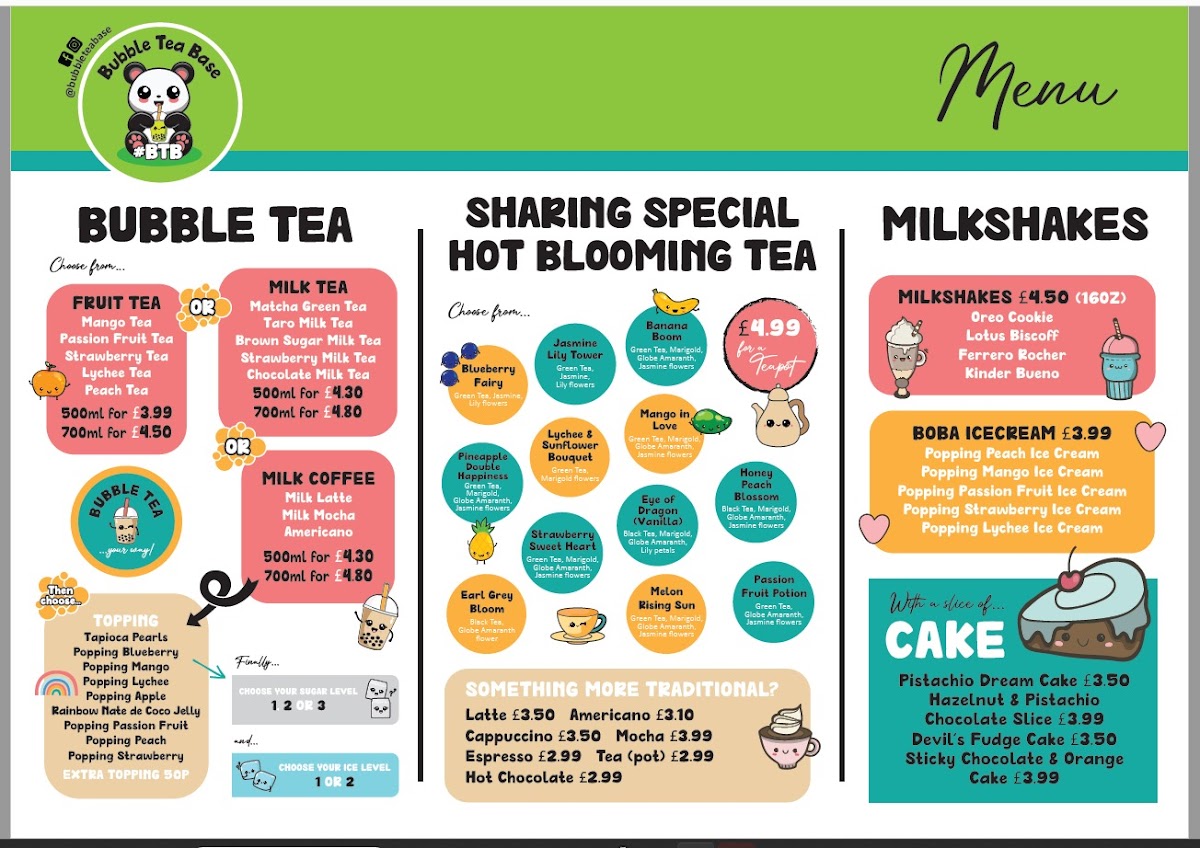 Bubble Tea Base Menu